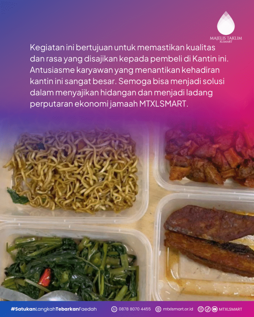 MTXLSMART berharap kantin ini tidak hanya menjadi tempat makan, tetapi juga menjadi ladang kebermanfaatan serta pusat perputaran ekonomi jamaah MTXLSMART melalui pengelolaan yang profesional dan penuh amanah.