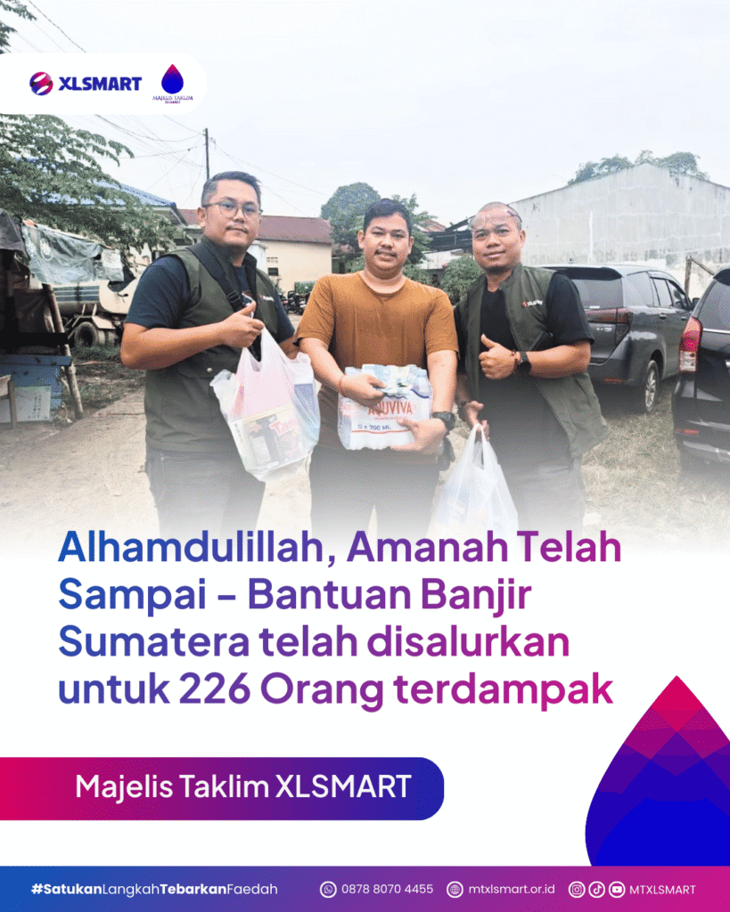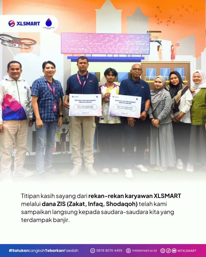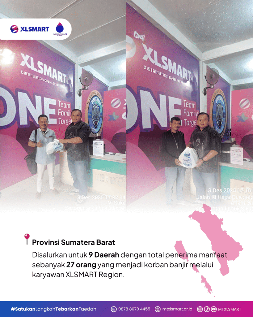 JAKARTA, 8 Desember 2025 — Alhamdulillah, titipan kasih sayang dari rekan-rekan karyawan XLSMART melalui dana ZIS (Zakat, Infak, dan Sedekah) telah disalurkan kepada saudara-saudara kita yang menjadi korban banjir di wilayah Sumatera.