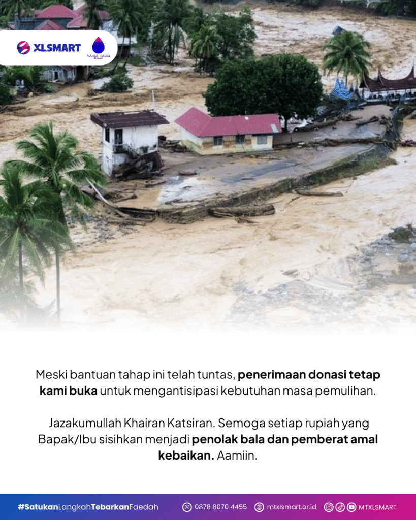 Meski penyaluran tahap ini telah tuntas, MTXLSMART tetap membuka kesempatan donasi untuk mendukung kebutuhan masyarakat di masa pemulihan pascabencana.